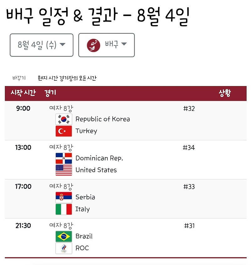 올림픽 여자배구, 터키 잡고 짜릿한 4강…한일전 패한 야구 ... from menu.mt.co.kr Jan 28, 2021 · 안녕하세요 오늘은 여자배구 세계랭킹 순위에 대한 정보를 준비했습니다. 2020년 1월 태국에서 열린 아시아예선전에서 한국에 패함에 따라 올림픽 진출이 또 좌절되었다. 각 조 상위 2개 팀이 4강에 진출하며 조 1위팀은 다른 조 2위와 경기를 치른다. 여자배구 대표팀은 런던 올림픽 4위, 리우 올림픽 8강 진출 등 국제 대회에서 나쁘지 않은 성적을 받아왔는데요. 30일 한국배구연맹(kovo)이 발표한 2021~22시즌 연봉 자료에 따르면. Jun 23, 2021 · 보이콧으로 인해 불참 출전권 획득 실패 참고로 한국은 이 무시무시한 b조에서 3등을 하며 살아남았고 4강 진출 신화를 썼다. Jul 01, 2021 · 하동군이 관내 5개 사회적기업과 공기캔 생산업체가 지난달 29일 여자배구 국가대표팀의 도쿄올림픽 우승을 기원하며 하동 먹거리를 활용한 칡즙·맛밤·불김·타르트·탄산수·과일칩·냉동김밥과 공기캔을 후원했다 스테파노 라바리니 감독이 이끄는 한국은 1일(한국시각) 이탈리아.